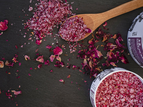 - Ingredientes: Flor de sal y pétalos de rosa.