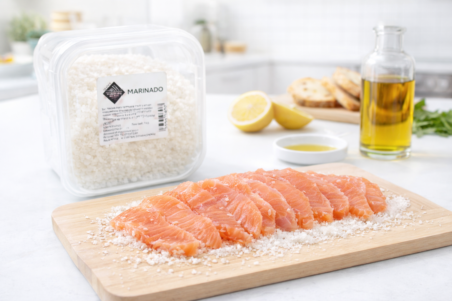 Esta combinación permite un marinado uniforme, controlado y natural, ideal para pescados como salmón, bacalao, lubina o dorada, respetando siempre el producto y su calidad original. El resultado es un pescado con mejor textura, sabor limpio y una curación homogénea.